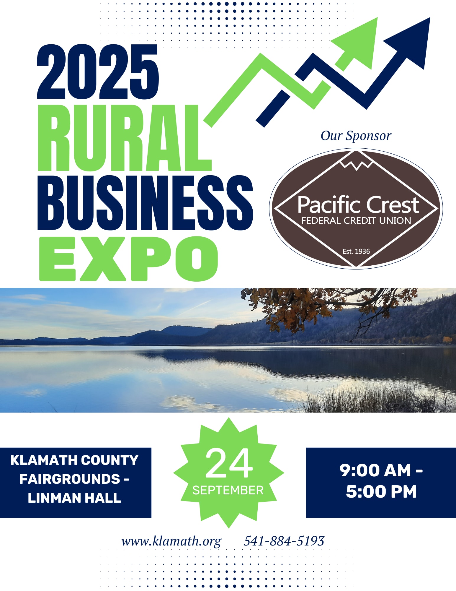 ¡Únase a nosotros en la Exposición de Negocios Rurales el miércoles 24 de septiembre en el Linman Hall en los terrenos de la feria del condado de Klamath! Este evento dinámico está diseñado para empoderar y conectar a los dueños de negocios a través de una serie de talleres interesantes y una exposición animada. Obtenga conocimientos valiosos sobre temas como mercado técnico digital, como reclutar empleados y servicios en juntas directivas sin fines de lucro, todos diseñados para ayudar a su empresa a prosperar en el competitivo mercado actual.