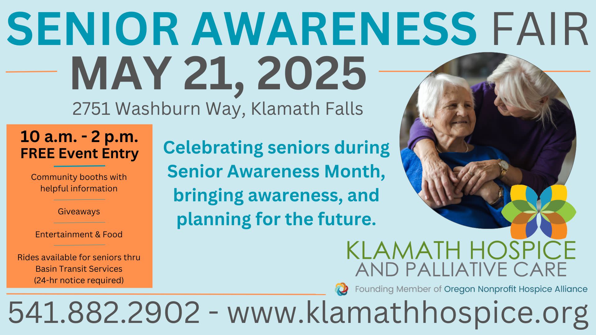 - Rides available for seniors thru Basin Transit Services 541-883-2877 (24-hour notice required)