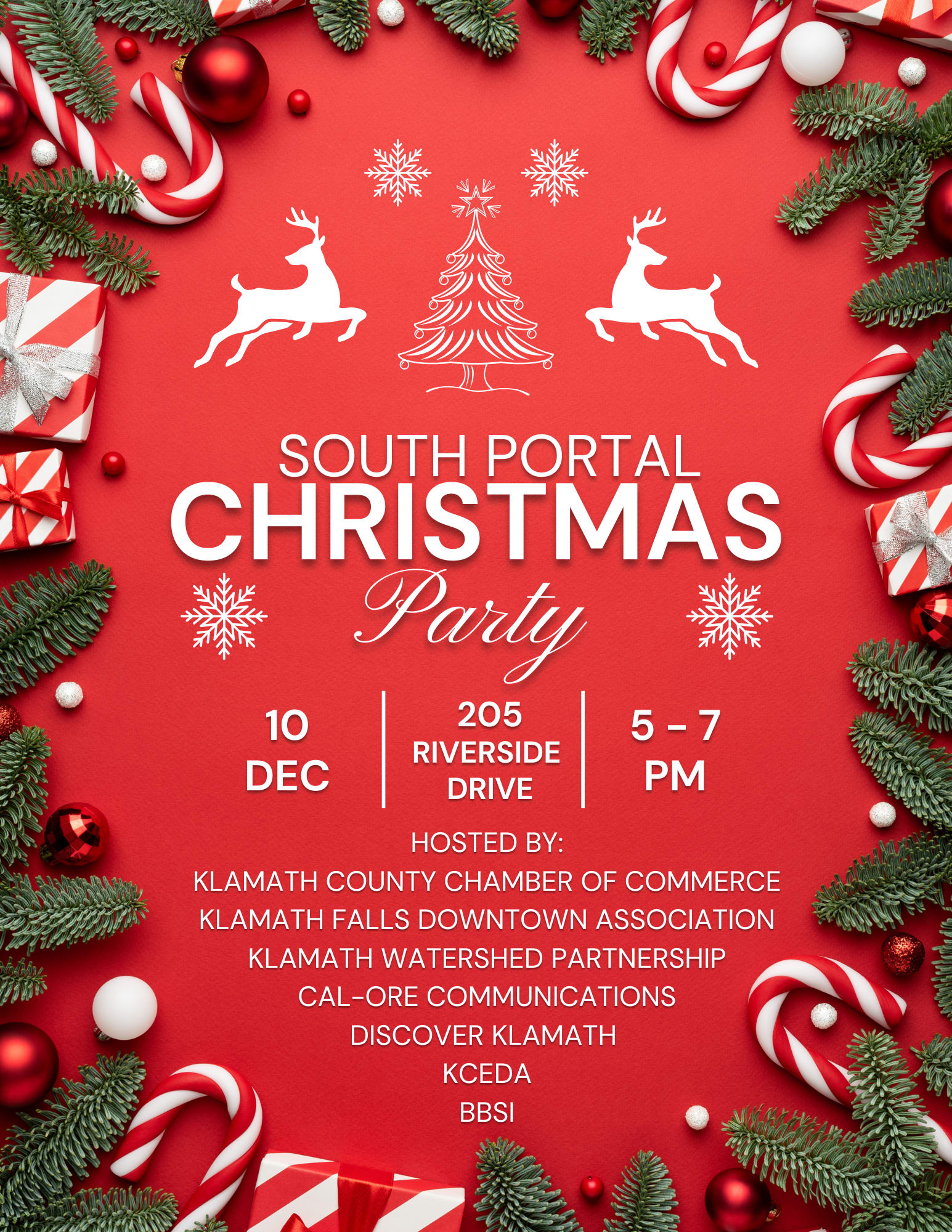 It's our annual building-wide Christmas Party! Come and mingle while enjoying food, drinks and holiday cheer! Hosted by the Klamath County Chamber of Commerce, Klamath Falls Downtown Association, Klamath Watershed Partnership, Cal-Ore Communications, Discover Klamath, KCEDA, and BBSI!Images