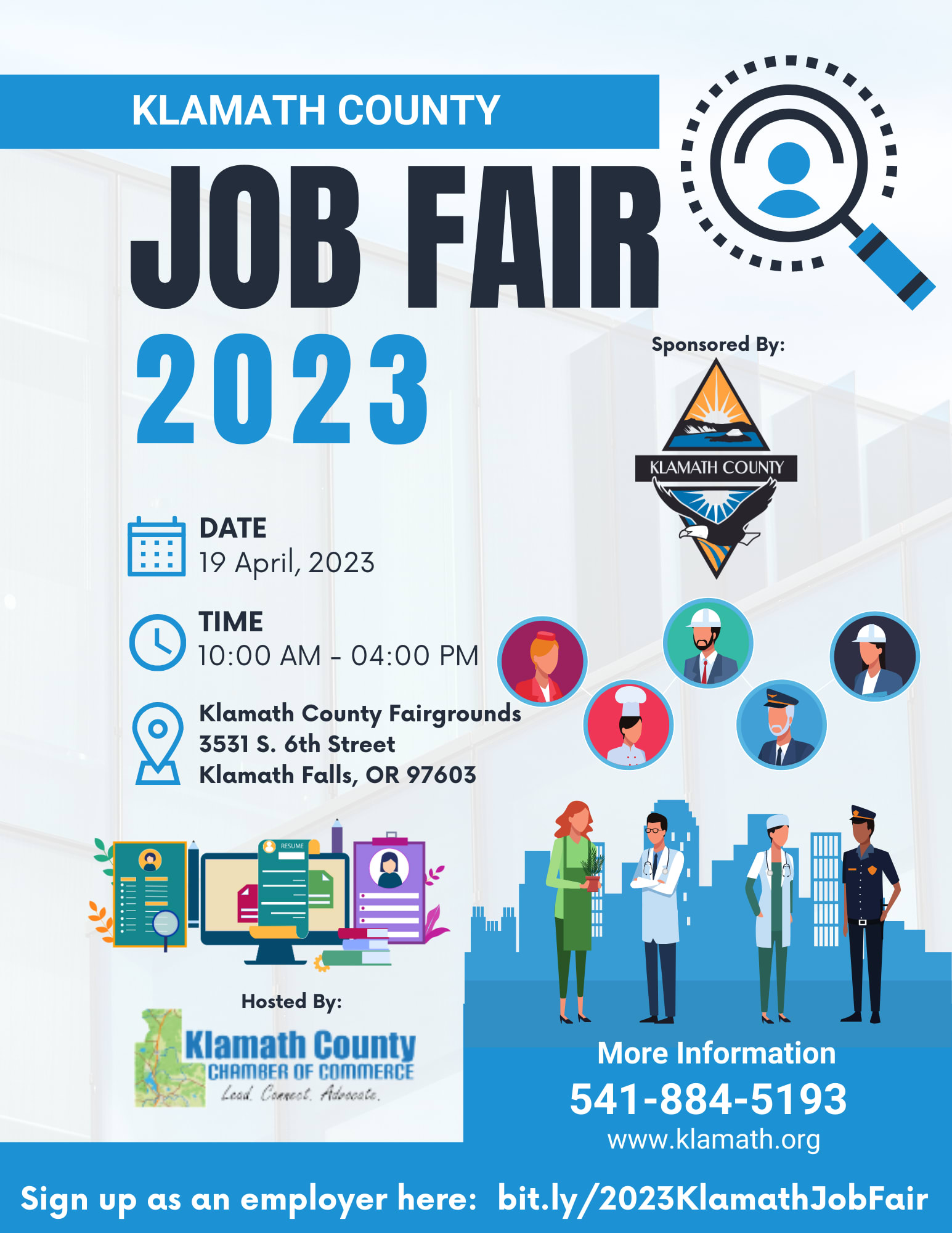 If your company is interested in having a table at our Job Fair, register here: bit.ly/2023KlamathJobFair
