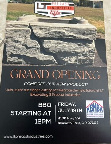 Let's help LT Excavating & Precast Industries celebrate their new adventure with a ribbon cutting! Ribbon cutting will be at 12pm! Open house immediately following the ribbon cutting.