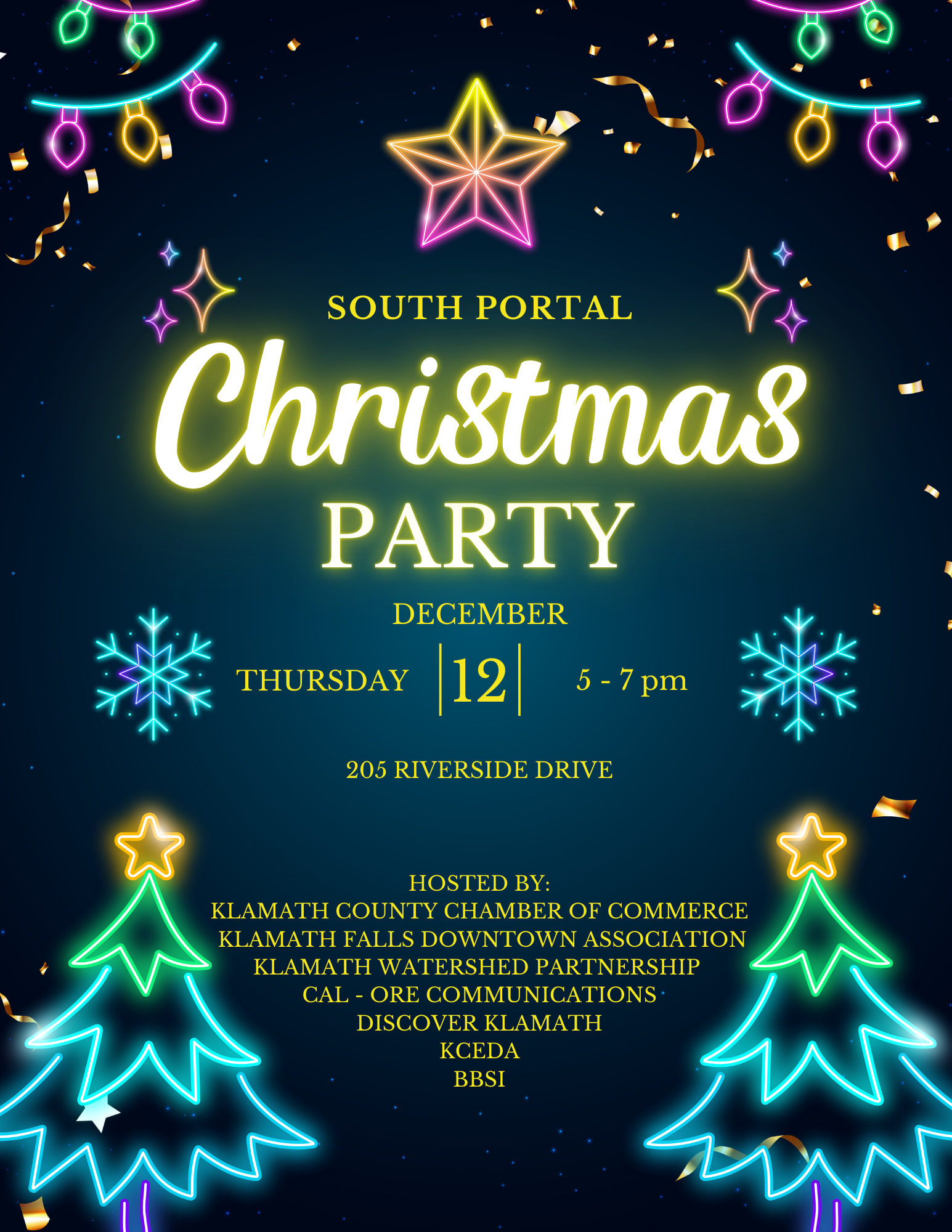 It's our annual building-wide Christmas Party! Come and mingle while enjoying food, drinks and holiday cheer! Hosted by the Klamath County Chamber of Commerce, Klamath Falls Downtown Association, Discover Klamath, KCEDA, BBSI, Cal-Ore, and Klamath Watershed Partnership!Images